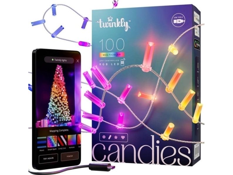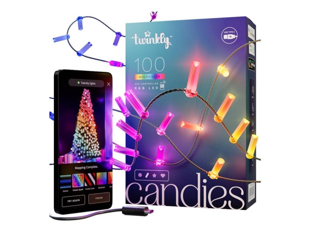 Twinkly Candies - kædelys - LED x 100 - 7 W - RGB-lys - stearinlys - gennemsigtig