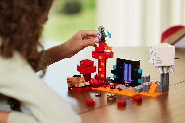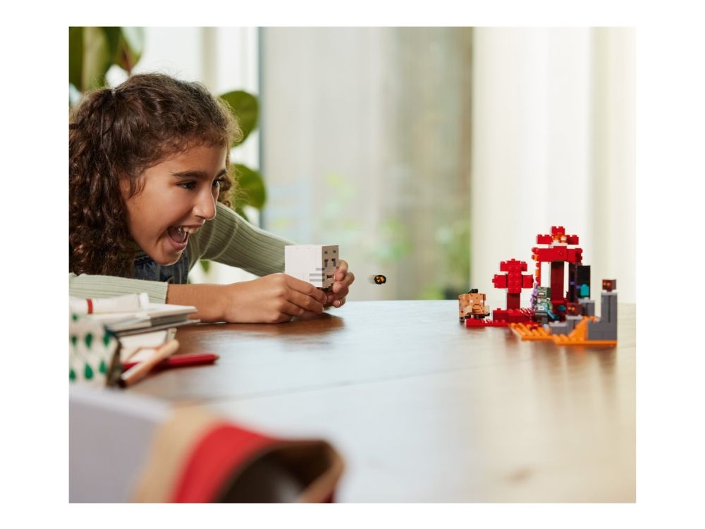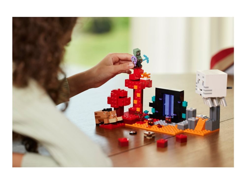 Gift for 8-year-olds and up – This Minecraft® Nether portal toy set is a gift idea for fans of Minecraft and LEGO® building toys