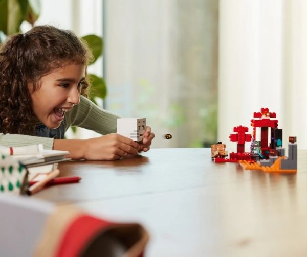 LEGO® set gift for gamers – Kids can build the mushroom-filled trees of the Minecraft® Crimson Forest and the rocky landscape of the Basalt Deltas