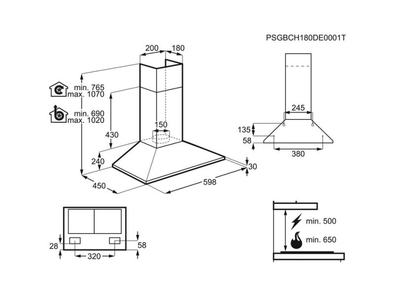 Electrolux EFC226V. Maximum extraction power: 420 m³/h, Type of extraction: Ducted/Recirculating, Fluid dynamic efficiency class: E. Type: Wall-mounted, Product colour: Cream, Control type: Buttons. Grease filter type: Aluminium, Number of filters: 2 pc(s). Number of bulbs: 2 bulb(s), Bulb type: LED, Illuminance: 91 lx. Energy efficiency class: D, Annual energy consumption: 72.8 kWh, Energy efficiency scale: A+++ to D