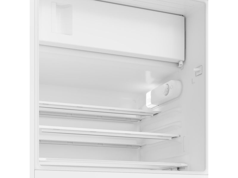Brand- Beko. Model- BU1154N . Height- 81.8 cm. Width- 59.5 cm. Depth- 54.5 cm. Weight- 31.50 kg. Colour- White. Refrigerator type- With the freezer inside. Energy Efficiency Class- E. Annual energy consumption- 145.48 kWh. Total refrigerator capacity- 107 l. Useful refrigerator capacity- 92 l. Useful freezer capacity- 15 l. Noise level- 37 dB. Refrigerator operating temperature- 4 - 4°C. Automatic defrost- No. Number of shelves- 3. Changeable door direction- Yes. Shelf material- Glass. Temperature zone close to 0 ° C- No. Quick freeze- No. Freezing capacity, kg / 24h- 2. Type of lighting fixture- LED. Number of compressors- 1. Thermostat- Yes. Safe time in case of power failure- 13 h. Mandatory warranty- 24 mo.