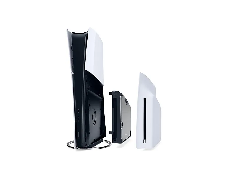 The new PS5 has been reduced in volume by more than 30%, and weight by 18% and 24% compared to the previous models. There are four separate cover panels, with the top portion in a glossy look, while the bottom remains in matte. If you purchase the PS5 Digital Edition, you can add the Ultra HD Blu-ray Disc Drive for PS5 later, as it will also be sold separately.Sony Disc Drive For PS5 Digital Edition Consoles (model group – slim). Type: Side panel, Platform: PlayStation 5, Suitable for game: PlayStation 5 Slim. Package width: 248 mm, Package depth: 127 mm, Package height: 248 mm. Number of products included: 1 pc(s). Country of origin: China, Harmonized System (HS) code: 9505 5000 00