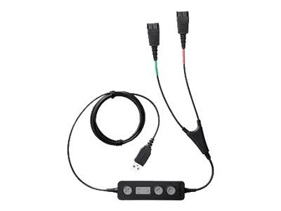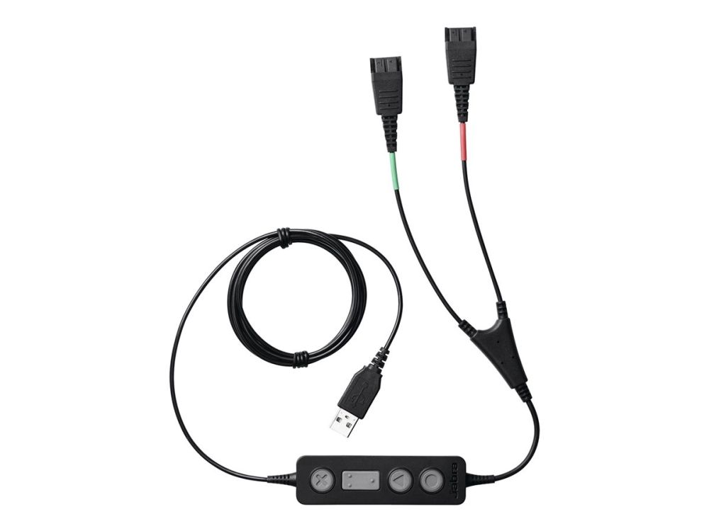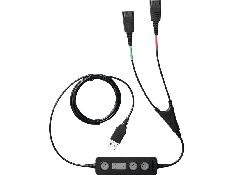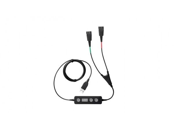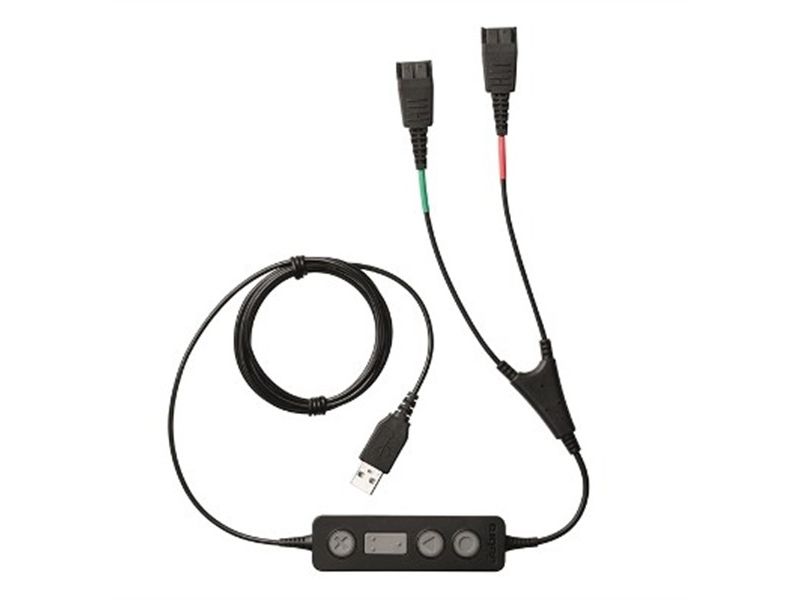 Jabra LINK 265 USB/QD Y-training cable connects two Jabra Quick Disconnect (QD) headsets to one PC, so supervisors can either stay muted or join the conversation.