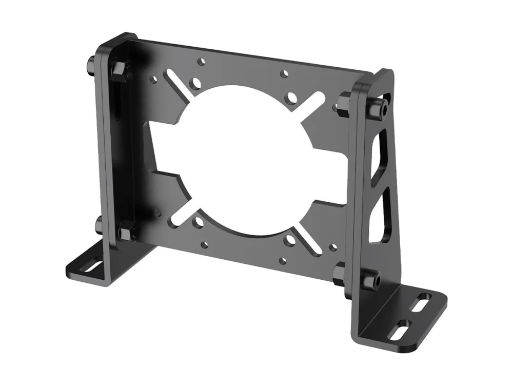 Elevate your gaming experience with the aerospace-grade aluminum wheel base bracket, offering versatile mounting options, space optimization, and seamless compatibility with the R16/R21 wheel bases.