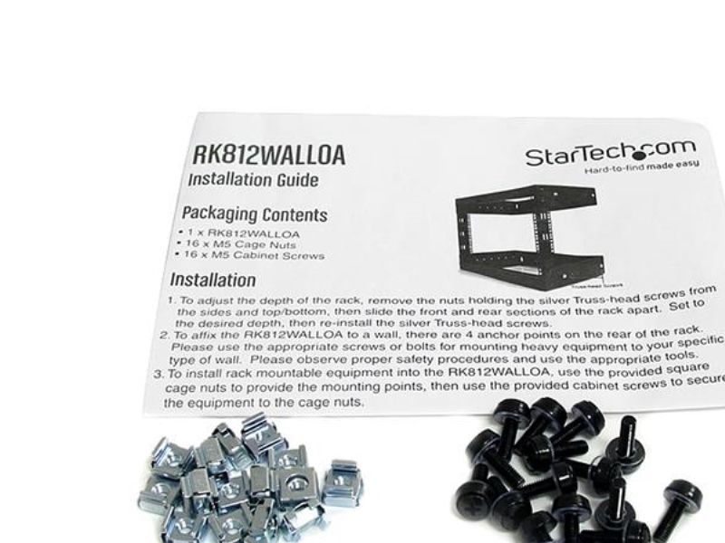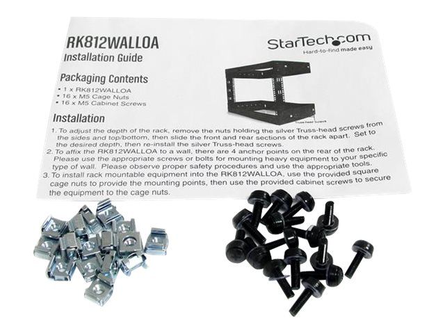 Startech 8U 19" Wall Mount Network Rack, Adjustable Depth 12-20" 2 Post Open Frame Server Room Rack for AV/Data/ IT Communication/Computer Equipment/Switch with Cage Nuts & Screws - 8U Adjustable Rack (RK812WALLOA) - rack - 8U