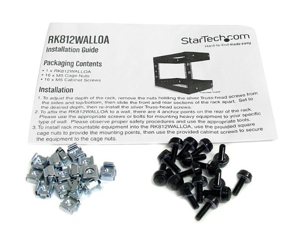 Mount your network and telecommunications equipment with the convenience of adjustable depth. The RK812WALLOA 8U Open Frame Wall Mount Equipment Rack with Adjustable Depth is a high-quality, sturdy relay rack solution that is easy to assemble and install into any environment. This TAA compliant product adheres to the requirements of the US Federal Trade Agreements Act (TAA), allowing government GSA Schedule purchases.