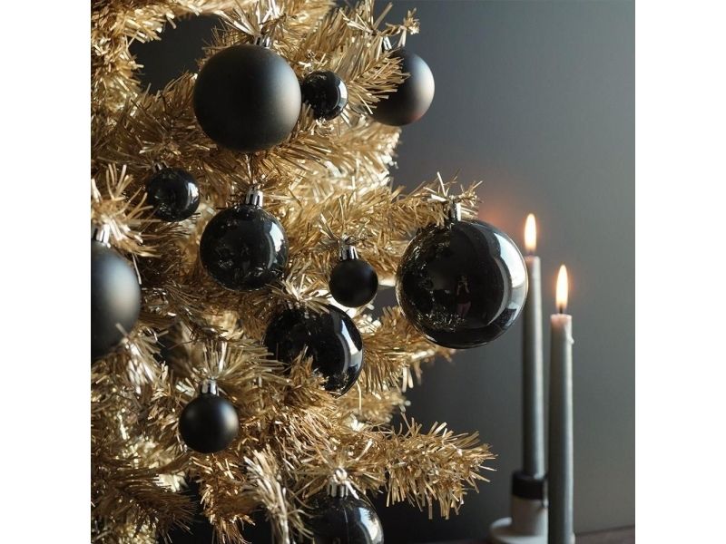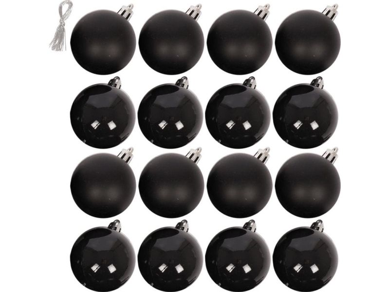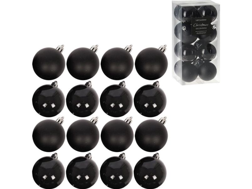 Vilde Christmas tree toys, black, unbreakable, 5 cm, 16 pcs