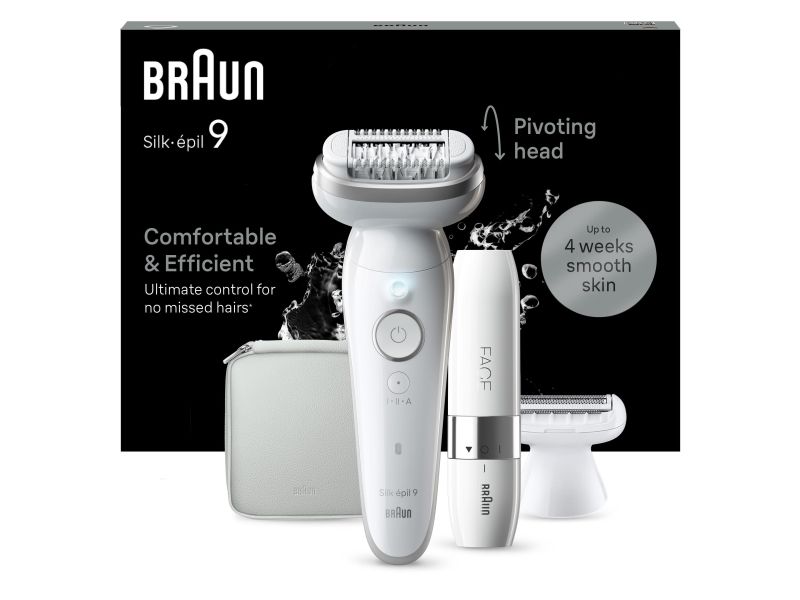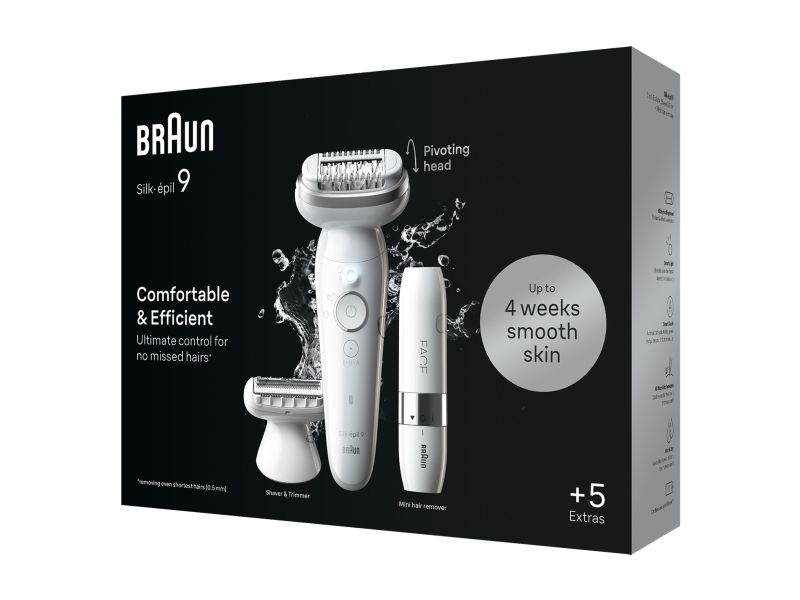 Braun Silk-épil 9 9-341. Product colour: White, Number of tweezers: 40 tweezers, Tweezers technology: MicroGrip. Power source: Battery, AC input voltage: 100 - 240 V, AC input frequency: 50 - 60 Hz. Width: 65 mm, Depth: 45 mm, Height: 163 mm. Package type: Box