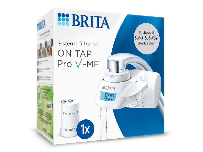 Brita SISTEMA ON TAP Pro V-MF. Water filter type: Faucet water filter, Product colour: White, Filtered water capacity: 600 L. Quantity per pack: 1 pc(s)