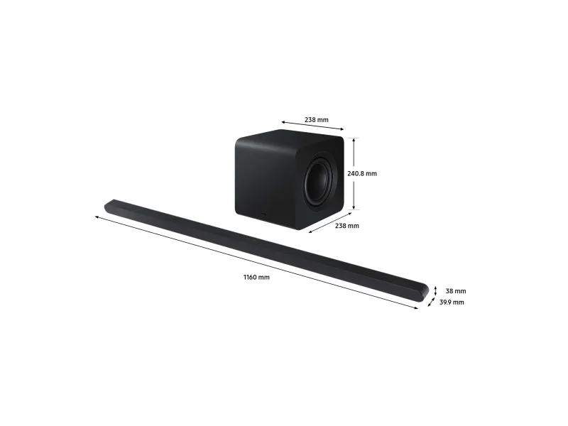 Elevate your audio experience with the Samsung HW-S800D sound bar system. Designed for high sound quality, this system supports a wide range of audio formats, including high-resolution audio, ensuring your music and movies sound their best. With integrated smart assistants like Alexa, Bixby, and Google Assistant, control your entertainment setup with just your voice, making it a smart addition to your home. Connectivity is easy, thanks to Bluetooth 5.2 and HDMI-eARC, allowing for easy integration with your devices. Moreover, the sound bar's Dolby Atmos and DTS Virtual:X capabilities provide a multidimensional sound experience, perfect for movies, music, and gaming. ENERGY STAR certification means you're choosing an energy-efficient option for your home.