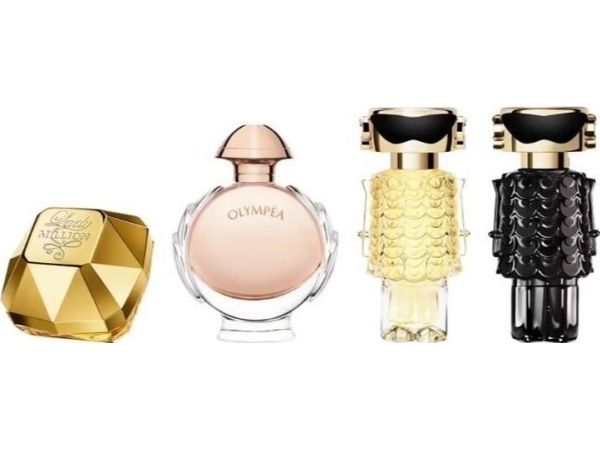 Paco Rabanne miniature set: Lady Million EDP 5ml, Olympea EDP 6ml, Fame EDP 4ml, Fame Parfum 4ml