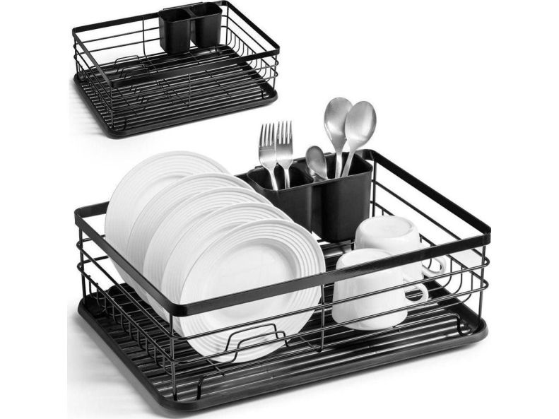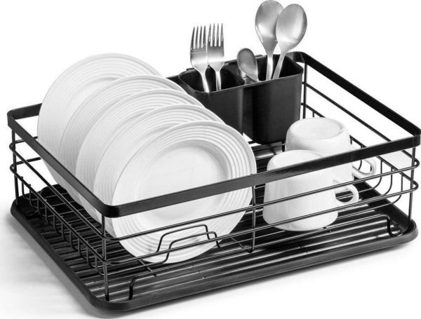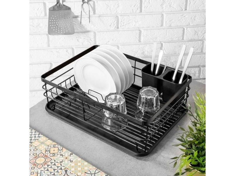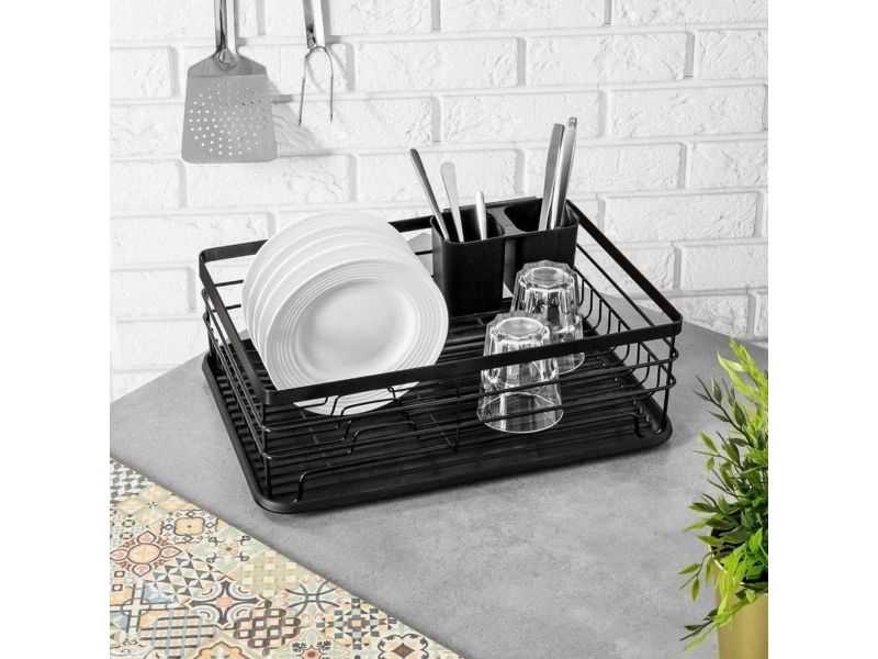 Dish dryer for dishes plates cups cutlery black draining rack loft style