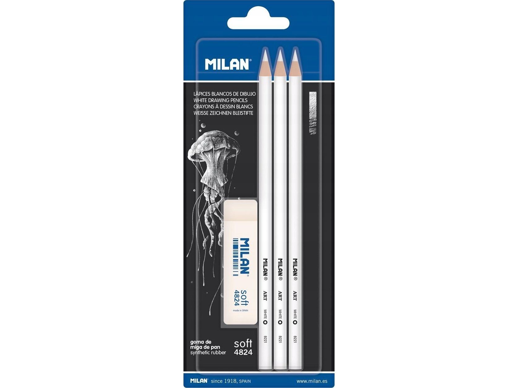 Milan pencil white graphite 3 pcs + eraser MILAN