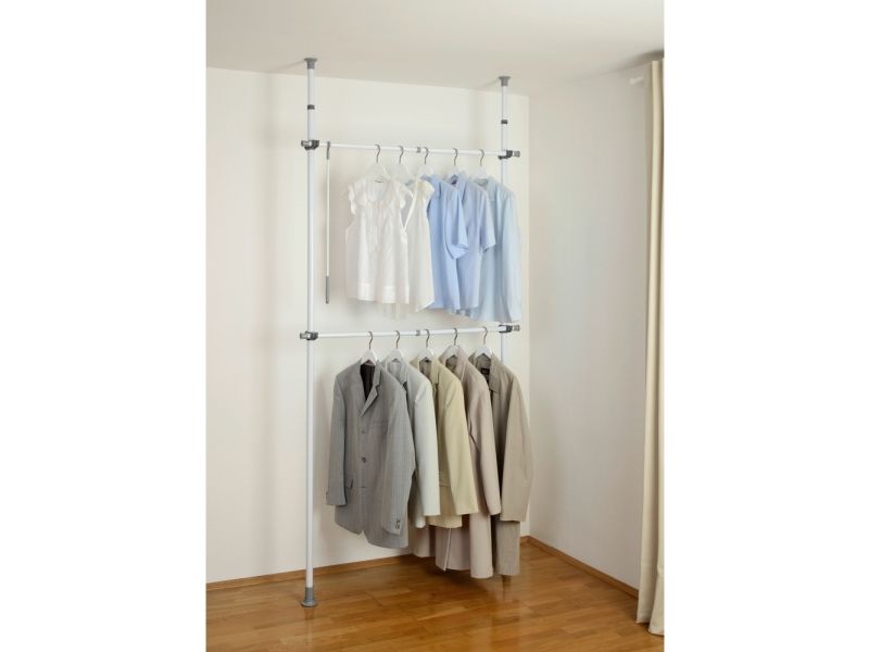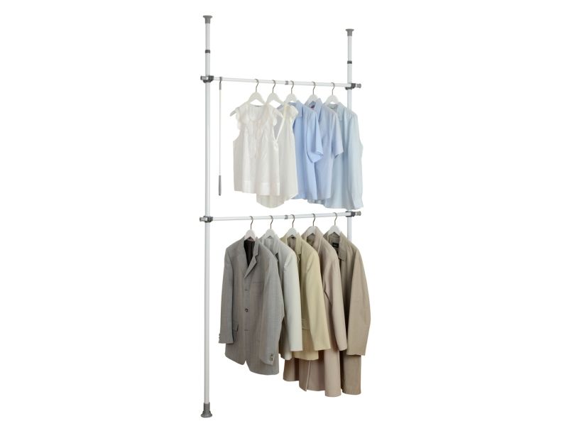 WENKO Hercules Basic clothing rack for hanging on wall 2 levels adjustable height and width metal white