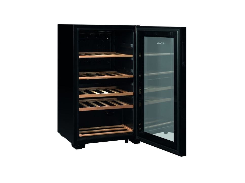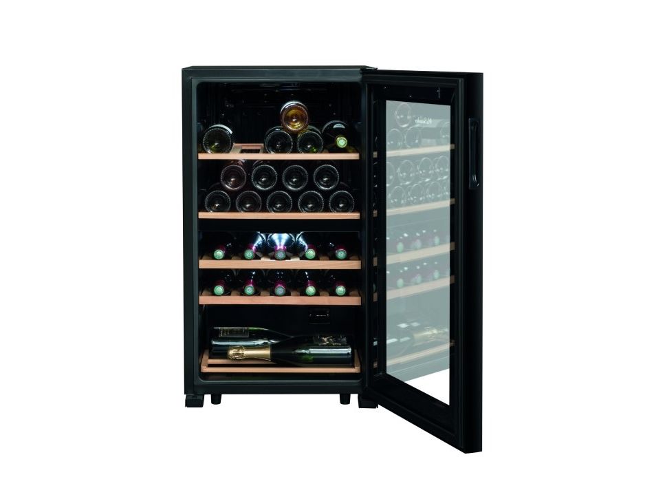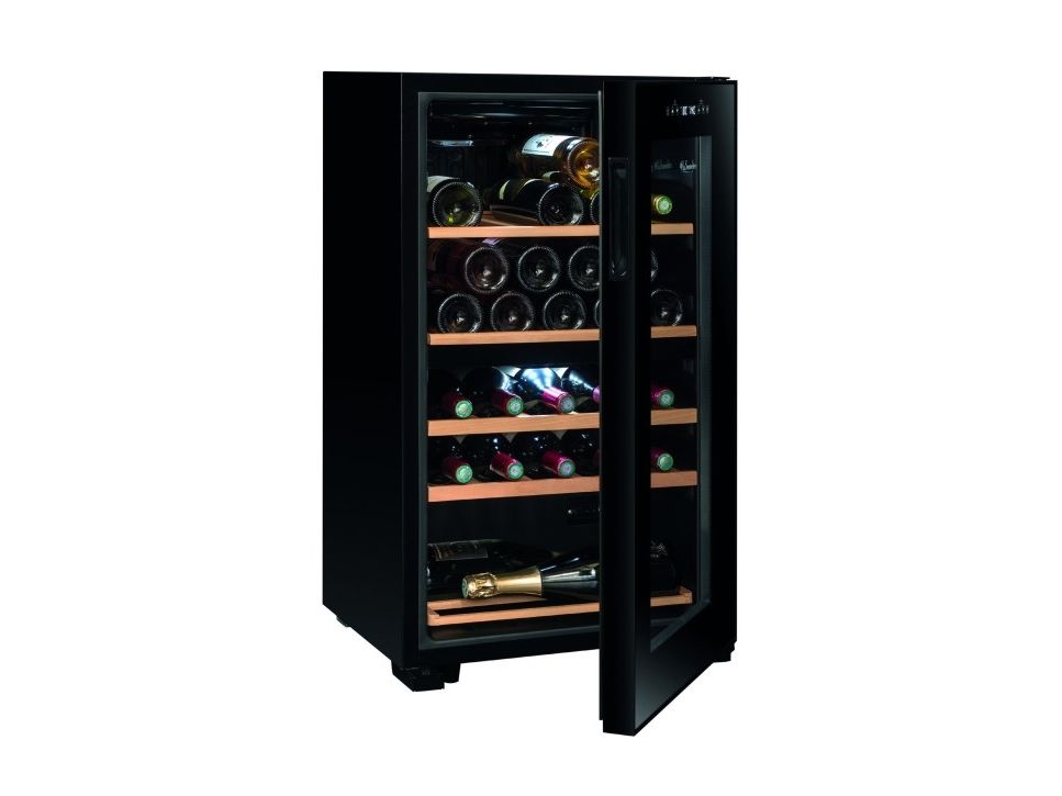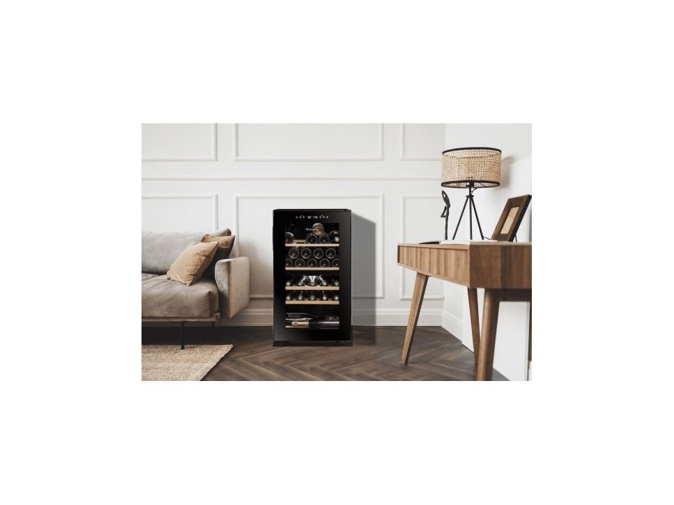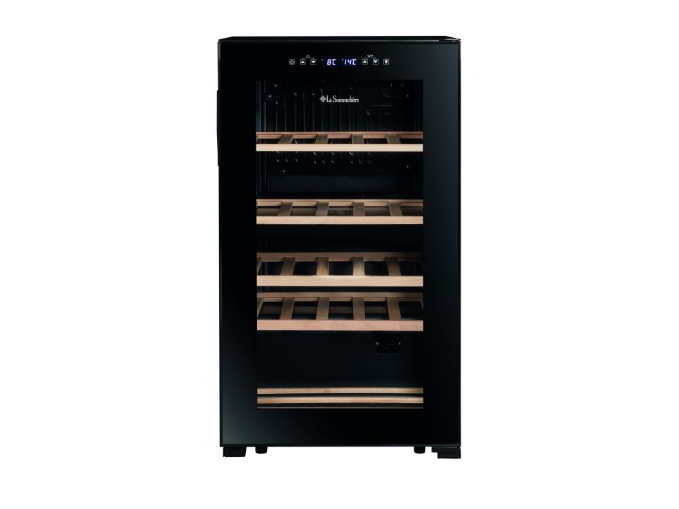 La Sommelière SLS32DZBLACK. Appliance placement: Freestanding, Housing colour: Black, Inner colour: Black. Bottles capacity: 32 bottle(s), Product type: Thermoelectric wine cooler, Temperature range (zone 1): 5 - 12 °C. Energy efficiency class: G, Annual energy consumption: 136 kWh, Connected load: 90 W. Width: 480 mm, Depth: 430 mm, Height: 850 mm. Package width: 515 mm, Package depth: 465 mm, Package height: 886 mm