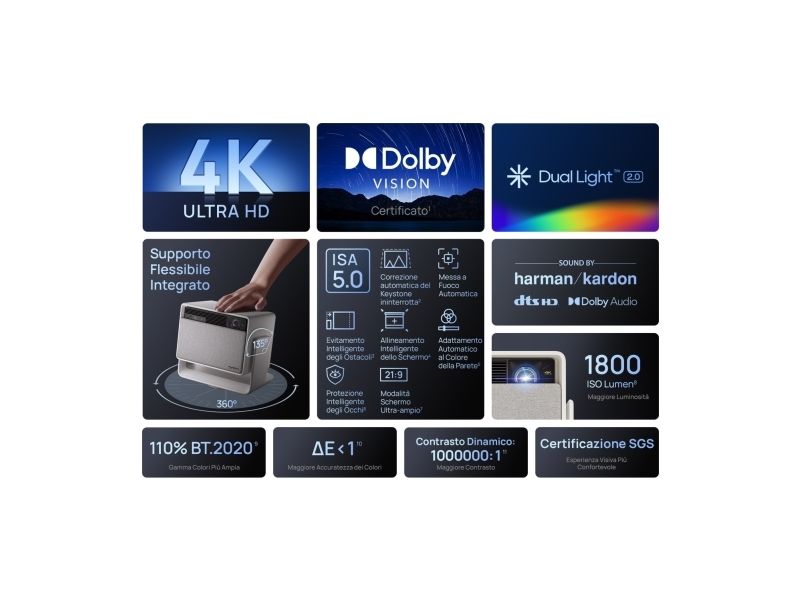 XGIMI Projektoren. Projector brightness: 1800 ANSI lumens, Projection technology: LED, Projector native resolution: UHD 4K (3840x2160). Light source type: Lamp, Service life of light source: 20000 h, Lamp power: 55 W. Focus: Auto. Noise level: 28 dB. RMS rated power: 24 W, Audio decoders: Dolby Digital, Dolby Digital Plus