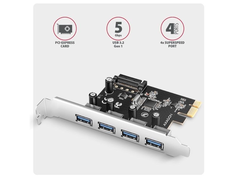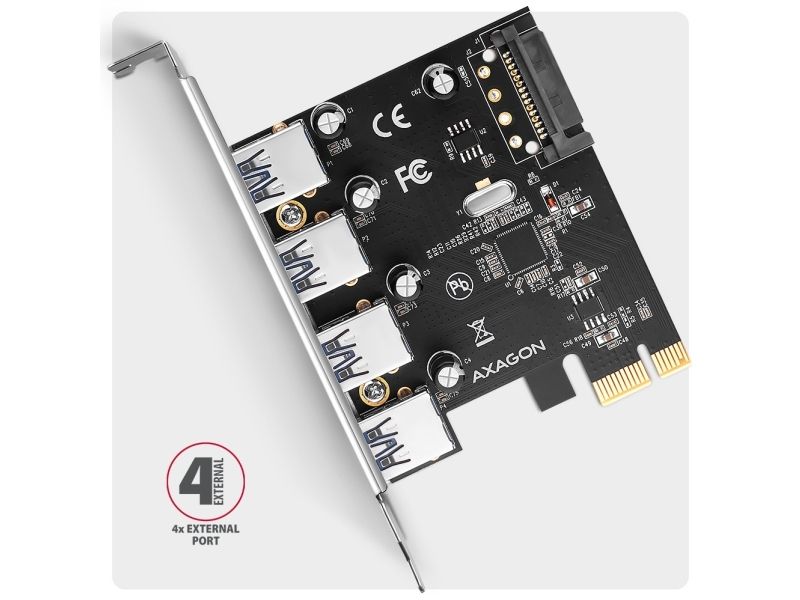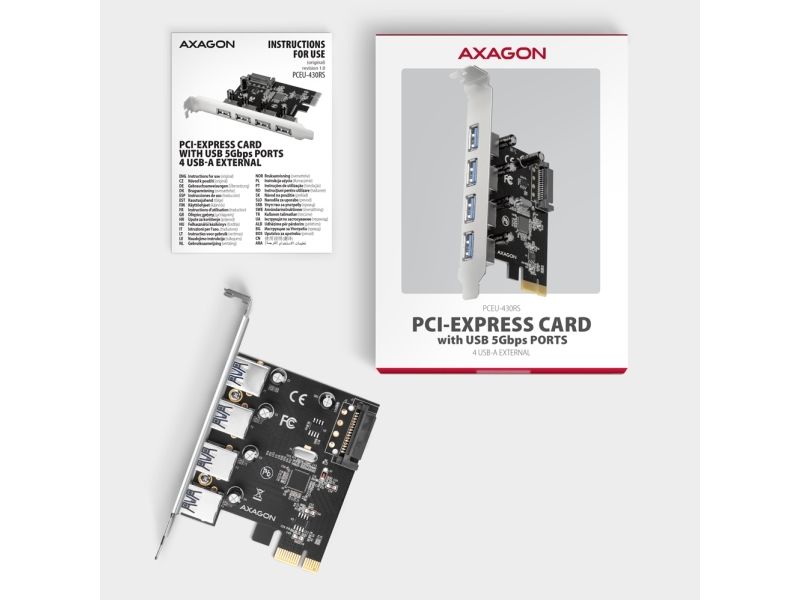 The AXAGON PCEU-430RS is a USB adapter designed to enhance connectivity through its 4 USB 3.2 Gen 2 ports. Featuring a plug-in card form factor, it provides an easy way to upgrade the data transfer capabilities of any compatible system. With data transfer rates up to 5 Gbps, this adapter ensures efficient performance, making it ideal for users who require reliable data transfer for peripherals.