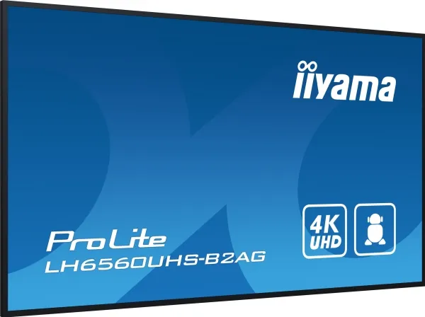 Elevate your visual communication with the LH6560UHS-B2AG and unlock the new possibilities for your business. This 500cd/m² high brightness display is a powerful business tool that takes your marketing and communication efforts to the next level. With its Android 11 OS, iiSignage² (Content Management Software), Signal FailOver and EShare features, this display offers a straightforward user experience, making content creation, management, and sharing a breeze. This ELED VA display consumes significantly less power compared to DLED IPS while maintaining the same level of brightness. Its versatile orientation, sleek design, and 24/7 reliability ensure it seamlessly integrates into any business environment. Whether it's used in retail, corporate, hospitality, or educational settings, the LH6560UHS -B2AG will undoubtedly captivate your audience and leave a lasting impression.iiyama LH6560UHS-B2AG. Product design: Digital A-board. Display diagonal: 163.8 cm (64.5"), Display technology: LED, Display resolution: 3840 x 2160 pixels, Display brightness: 500 cd/m², HD type: 4K Ultra HD. Wi-Fi. Operating hours (hours/days): 24/7. Operating system installed: Android 11. Product colour: Black