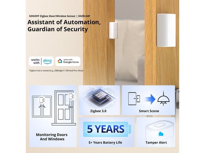 The SONOFF SNZB-04P works with popular platforms such as Alexa, Google Home, SmartThings, Alice and IFTTT, allowing you to integrate it seamlessly into your smart home ecosystem. In addition, the sensor can be easily added to Home Assistant via ZHA or Zigbee2MQTT, allowing for advanced automation and personalization of functions. The product is also compatible with a wide variety of Zigbee hubs.