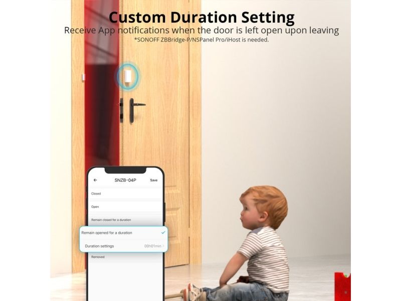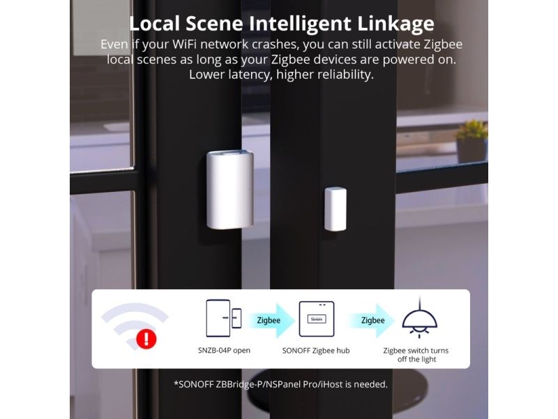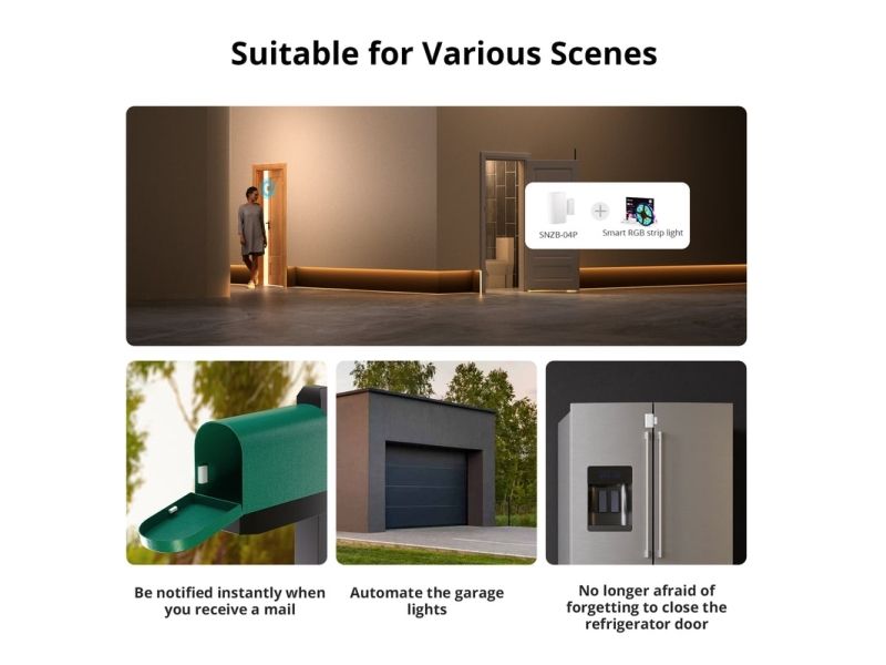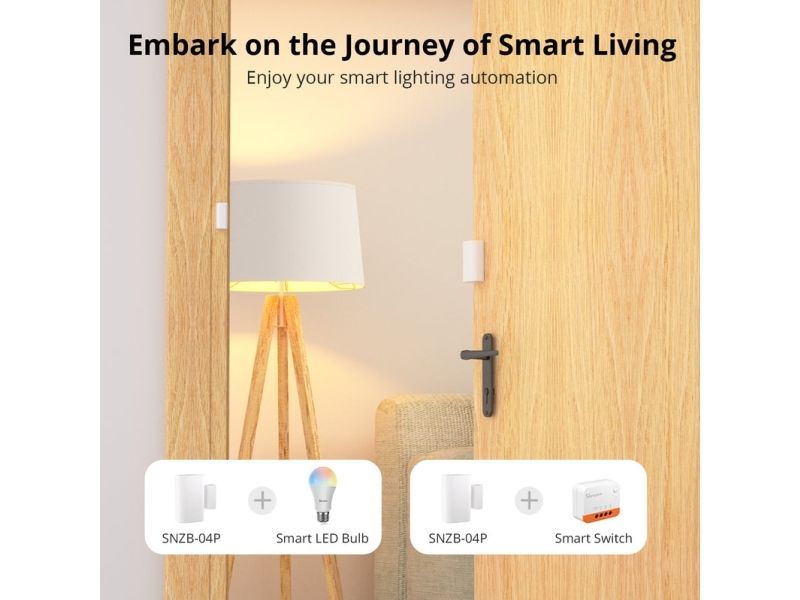 Combine the sensor with other devices in your home, create smart scenes and give you more convenience! For example, you can make it so that when you enter the bathroom, the light automatically turns on, and when you leave it, it turns off. It's also possible to pair the SNZB-04P with the camera and NSPanel Pro. This makes it easy to set up an automation that will trigger an alarm and cause a surveillance recording to be saved if a stranger enters the apartment.