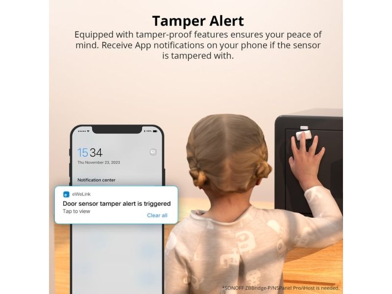 Model SNZB-04P is equipped with a tamper alarm function. In case of an attempt to damage or remove the sensor, you will immediately receive a relevant notification to your smartphone. So you can always feel safe!