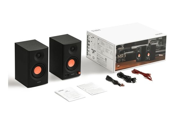 The Edifier MR3 is a speaker system designed for audio performance, suitable for studio monitoring. With Hi-Res Audio support and a maximum sampling rate of 96 kHz, it provides sound clarity across a frequency response of 58 - 40,000 Hz. The integrated Class D amplifier ensures audio output while maintaining a signal-to-noise ratio of 85 dB. Connectivity options include Bluetooth 5.4 for wireless streaming and various wired inputs, catering to diverse audio sources. The speaker system features an MDF body along with silk drivers for sound quality, making it a choice for music enthusiasts and professionals.