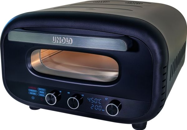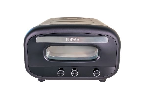 Unold 68805. Number of pizzas: 1 pizza(s), Product colour: Black, Heating element material: Stainless steel. Power: 1700 W, AC input voltage: 220-240 V, AC input frequency: 50/60 Hz. Width: 433 mm, Depth: 472 mm, Height: 286 mm. Package width: 546 mm, Package depth: 495 mm, Package height: 350 mm. Pizza peel material: Wood