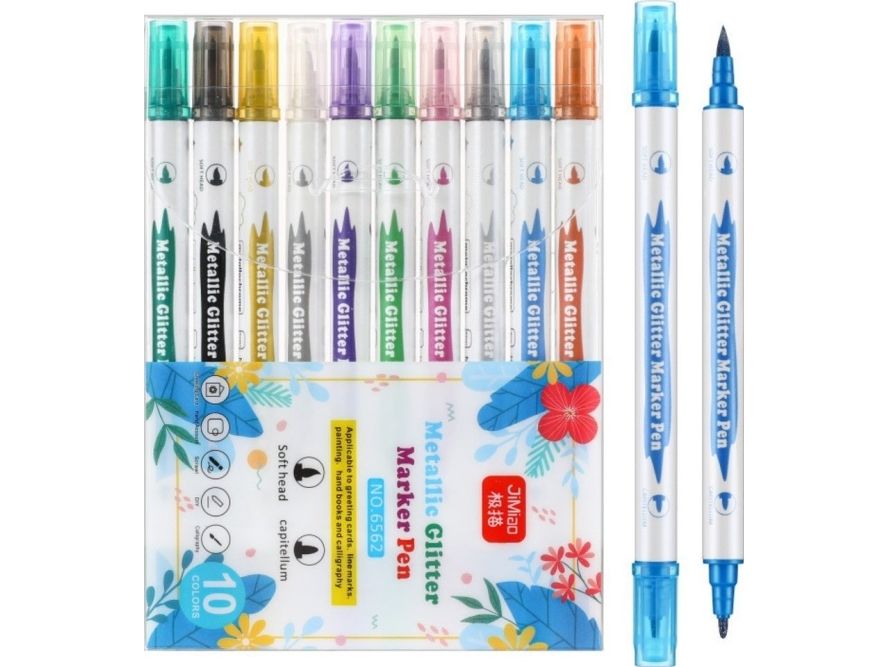 Lean set of metallic markers with glitter, assorted colors, double-sided, 10 pcs