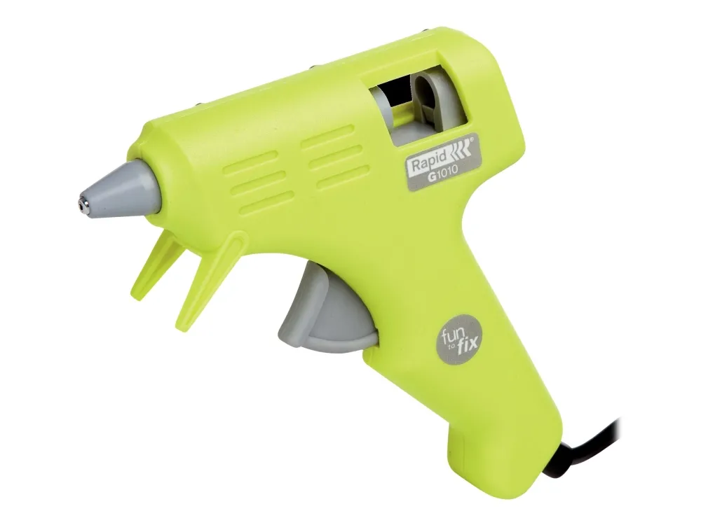 Rapid G1010. Product colour: Green, Housing material: Plastic. Glue stick diameter: 1.2 cm. Power source: AC, AC input voltage: 220-240 V, AC input frequency: 50 Hz. Width: 220 mm, Depth: 60 mm, Height: 155 mm. Power consumption (typical): 8 W