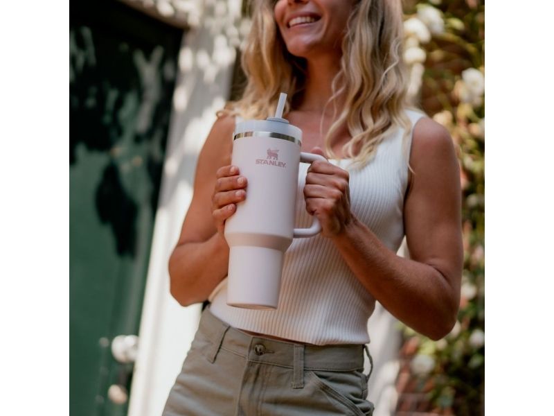 Constructed of 90% recycled stainless steel for sustainable sipping, the Stanley Quencher H2.0 FlowState™ Tumbler 1.2L helps you reach your hydration goals with fewer refills. Working, workouts, road trips — you’ll want this Stanley tumbler always by your side. Thanks to Stanley’s vacuum insulation, your water will stay cold for 11 hours, 2 days when iced. The advanced FlowState™ lid features a rotating cover with three positions: a straw opening designed to resist splashes while holding the reusable straw in place, a drink opening, and a full-cover top. The ergonomic handle includes comfort-grip inserts for easy carrying, and the narrow base fits just about any car cup holder. Lastly, every piece of this stainless steel water bottle is dishwasher safe. Don't miss out on the hydration must-have you never knew you needed.Stanley Quencher H2.0 FlowState Tumbler 1.2L. Product colour: Pink, Interior material: Stainless steel, Hot keeping time: 7 h. Volume: 1200 ml, Width: 100 mm, Depth: 148 mm
