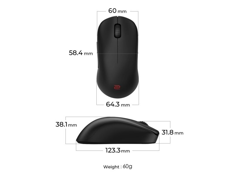 BenQ ZOWIE U2-DW - mus - 4K, til esports, M - USB-A, 2.4 GHz - sort