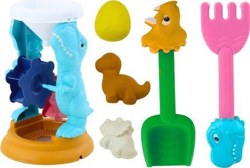 LeanToys sand play set (mixer, shovel, rake, molds) dinosaurs