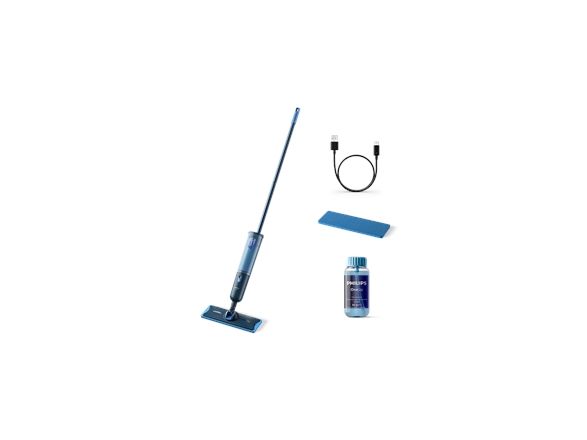 Goodbye old mop, hello OneUp! Say goodbye to traditional mops that spread dirt! The Philips OneUp Electric Mop delivers 2 x cleaner floors twice as fast***. It sucks up dirty water while pumping clean water onto the floor for a spotless shine.Philips OneUp 3000 Series Electric Mop. Type: Cordless mop, Dirty water tank capacity: 0.27 L, Product colour: Blue. Runtime: 50 min. Width: 350 mm, Depth: 120 mm, Height: 1420 mm. Quantity per pack: 1 pc(s)