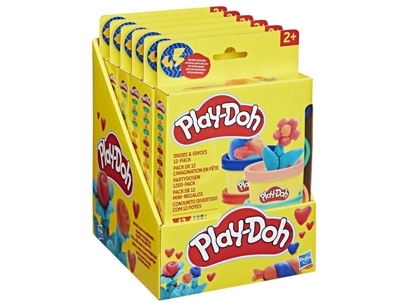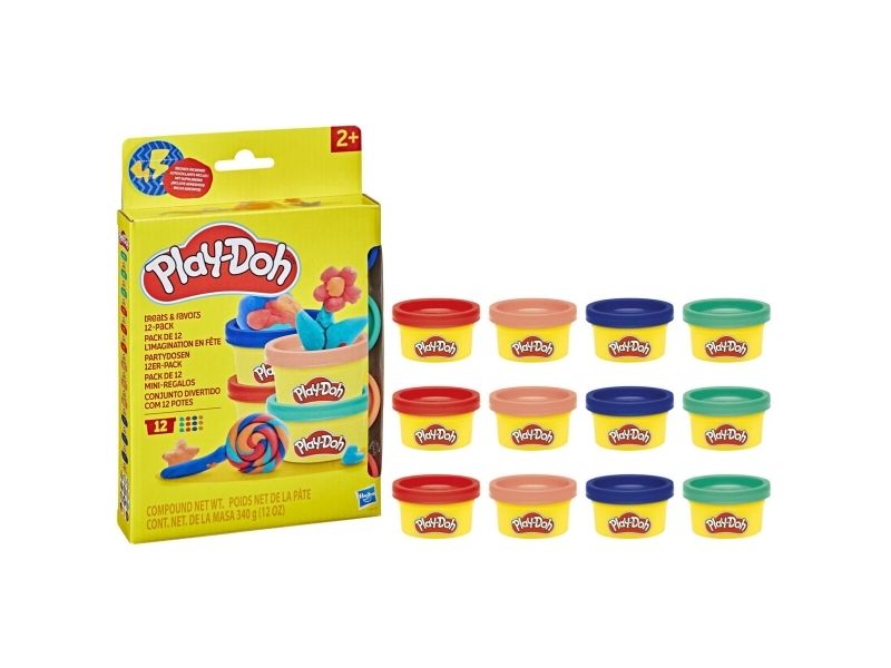 Spark imagination at your next celebration with the Treats Favors Play-Doh 12 Pack! The Play-Doh mini cans come in 4 different colors with 3 of each color so that it's easier to share. Place a sticker on each can and write someone's name or a short message to personalize your kids prizes. Whether you're handing out kids birthday party favors or classroom prizes, these small gifts for kids are a great candy alternative. PLAY-DOH and HASBRO and all related trademarks and logos are trademarks of Hasbro, Inc.