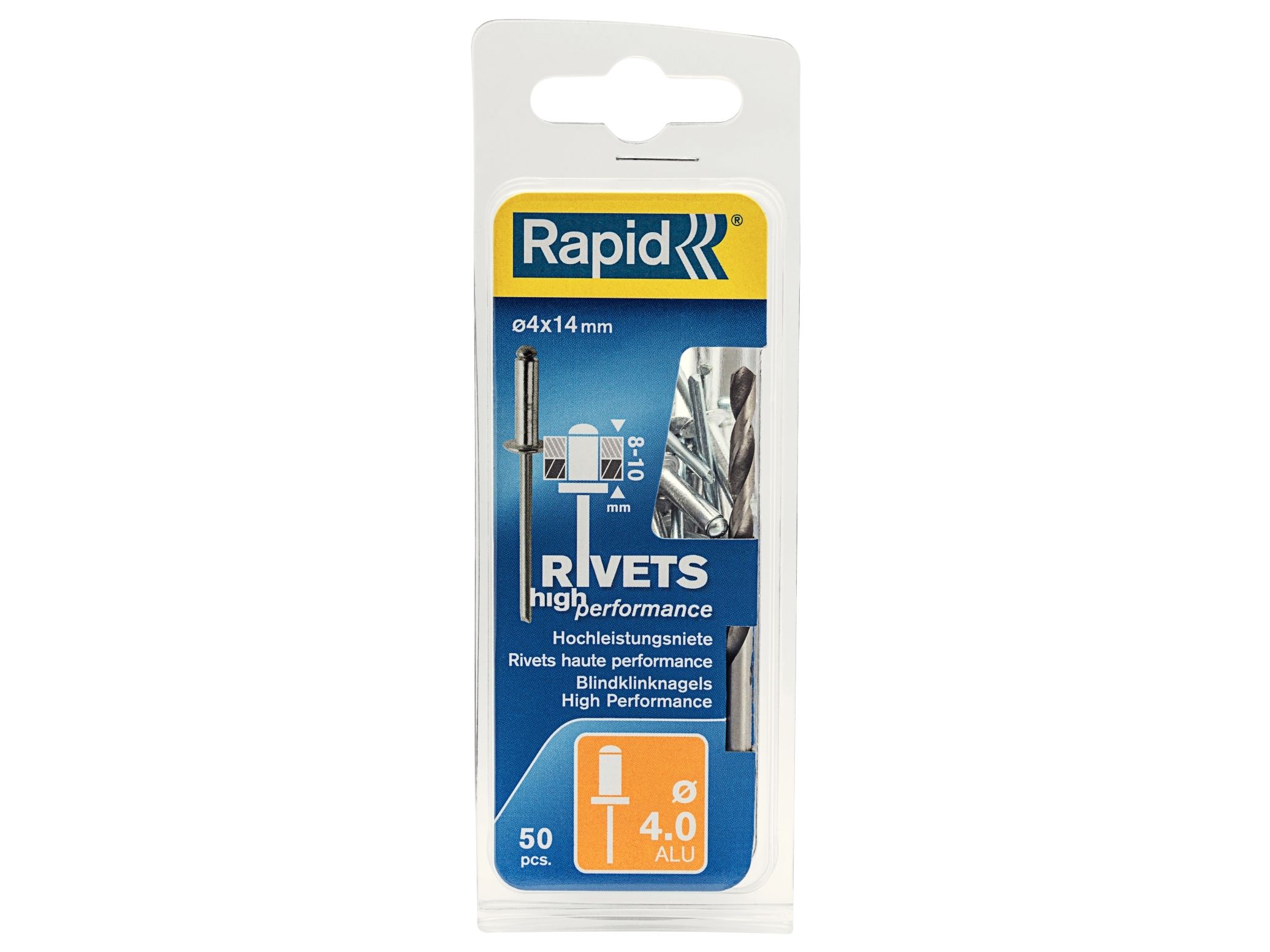 Rapid Blindniete Universal, 4,0 x 14 mm, aus Aluminium Klemmbereich: 8 - 10 mm, passend für Rapid Blindnietzangen, - 1 Stück (5000385)