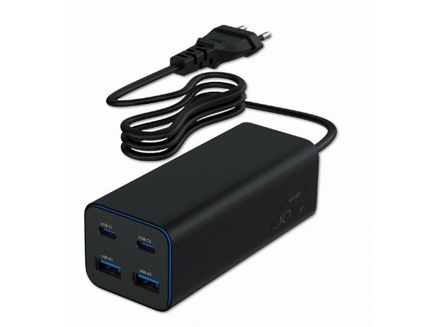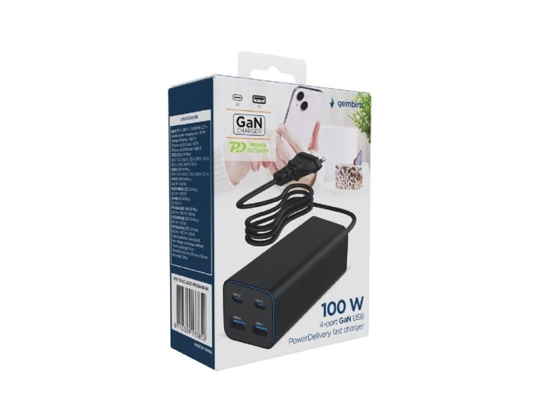 Gembird strømforsyningsadapter - 2 x USB-C, 2 x 9 pin USB Type A - 100 Watt