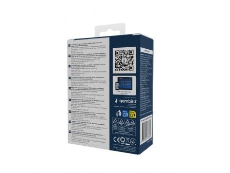 The Gembird AC power cable delivers efficient charging and versatility for various devices, including cellular phones and notebooks. With a length of 1.5 m, it ensures easy connectivity in any setting. This power adapter utilizes GaN Technology, offering fast charge capabilities through Power Delivery and Qualcomm Quick Charge 3.0, suitable for high-demand charging scenarios. Equipped with four output connectors, including two 24-pin USB-C and two 9-pin USB Type-A ports, this adapter provides options for multiple devices. Protection features such as short circuit, overheat, overvoltage, and overcurrent protection ensure safety during use. The adapter's ability to provide voltage options of 5/9/12/15/20 V at a maximum power of 100 W enhances its functionality, making it a reliable choice for users seeking efficiency and convenience.