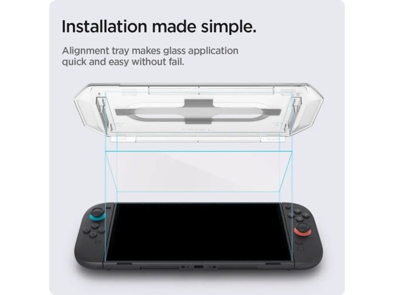 Less time, guaranteed alignment. The newest Glas.tR EZ Fit comes with an innovative tray designed to eliminate the time wasted to achieve the greatest alignment. Simply place the tray over the watch, press the center and watch the glass adhere in place. Shield the screen with 9H hardness Glas.tR EZ Fit with the latest and easiest technology. Spigen GLAS.tR EZ Fit Nintendo Switch 2 Screen Protector. Type: Screen protector, Platform: Nintendo Switch 2, Product colour: Transparent. Number of screen protectors: 2 pc(s)
