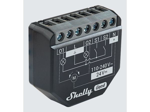 Shelly 2PM Gen4 is a sophisticated 2-channel smart relay with power measurement capabilities, supporting WiFi, Bluetooth, and Zigbee communication. Designed for installation behind switches, sockets, or lamp outlets, it enables easy control and automation of lights, fans, roller blinds, venetian blinds, awnings, and other bi-directional AC motors. Its compact design allows for easy installation in wall and ceiling boxes. Key Features. Matter Certified: Easily integrates via Matter into your favorite smart home system. Multi-protocol Chip: Gen4 devices can communicate via 2.4 GHz WiFi and/or Zigbee, with simultaneous use on different platforms. Bluetooth Functionality: Enables direct communication between Shelly relays/dimmers and battery-powered devices. Local Operation: All primary functions work 100% locally, ensuring continued operation even if your network is down. High Compatibility: Integrates with over 200 partner systems including Google Home, Apple HomeKit, Amazon Alexa, Home Assistant, Samsung SmartThings, Athom Homey, and many more. Advanced Features: Supports MQTT, HTTP, and WebSocket for advanced communication, all with TLS support. Technical Specifications. Power supply: 24V DC or 110-240V AC, Maximum load: 10A per channel, 16A total (18A peak), Two integrated power meters for separate consumption monitoring of each channel, Two optional switch inputs. Versatile Applications. Shelly 2PM Gen4 offers multiple use cases, including: Dual-channel lighting control, Socket control, Venetian blind control, including slat angle adjustment, Roller shutter, awning, and garage door control, Power Monitoring. The device automatically measures power consumption on each channel, which can be monitored through the Shelly Smart Control app and easily used for automations. Local Operation - No Gateway Required. All Shelly WiFi devices have a built-in web server, providing a host of features that always work, regardless of internet connectivity. No gateway is required, allowing you to start with just a single Shelly device.
