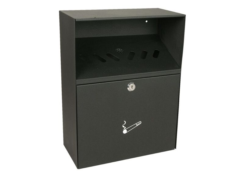 Ashtray V-Part black powder-coated steel with metal inner bin incl. key