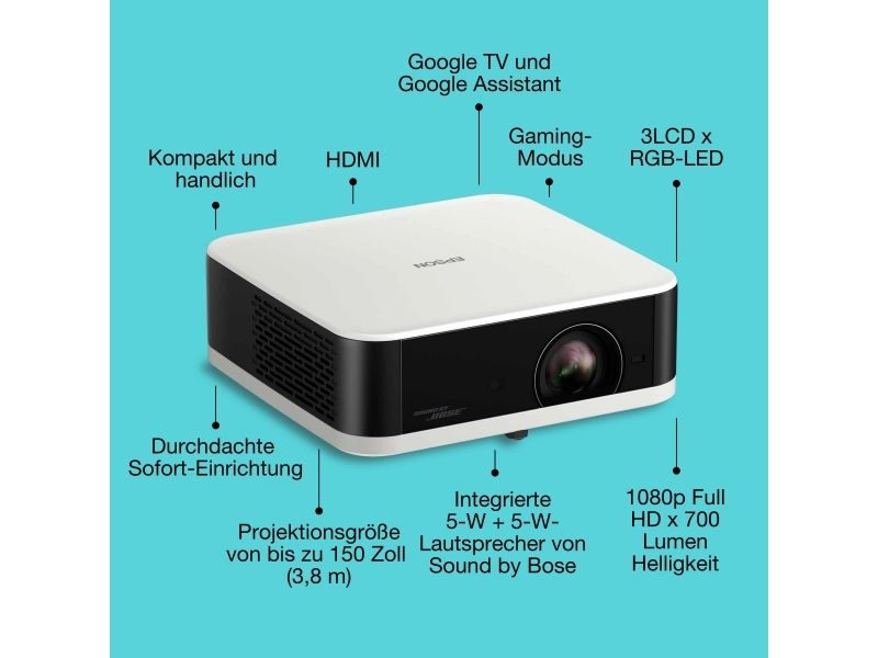 Epson Lifestudio Pop EF-61W - 3LCD-projektor - bærbar - 802.11a/b/g/n/ac wireless / Bluetooth - diamant hvid
