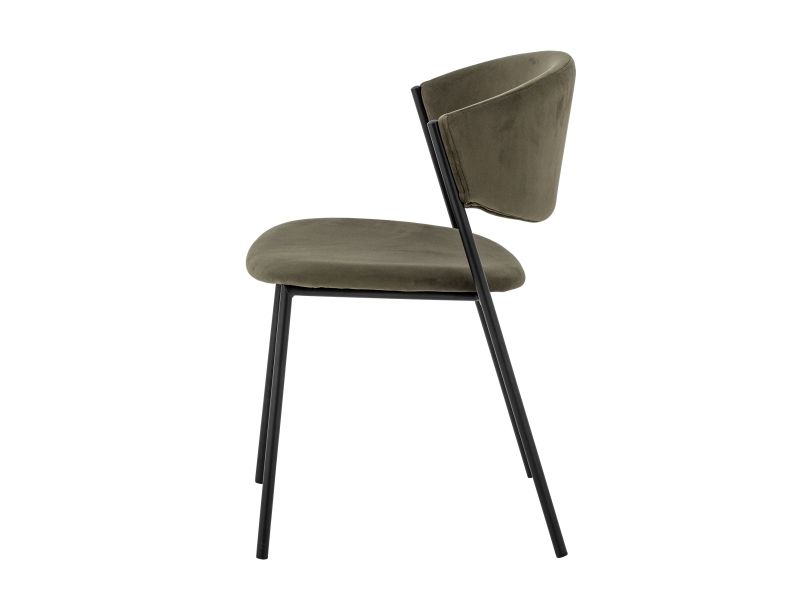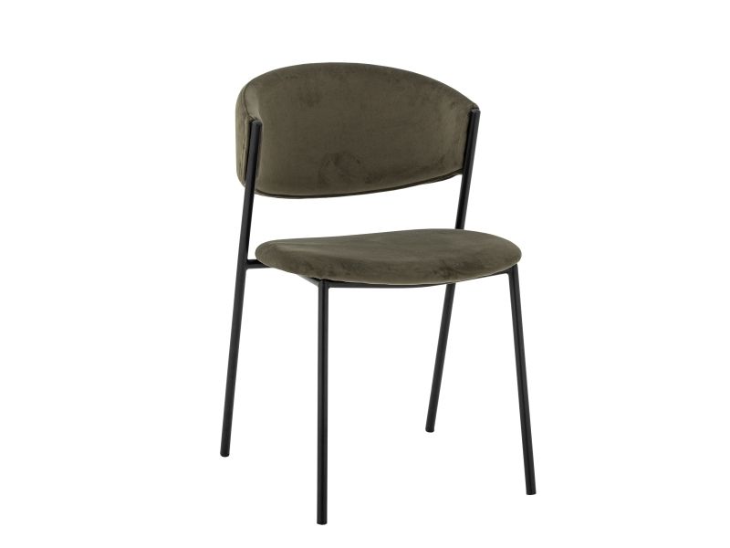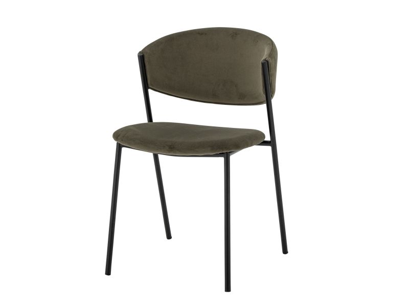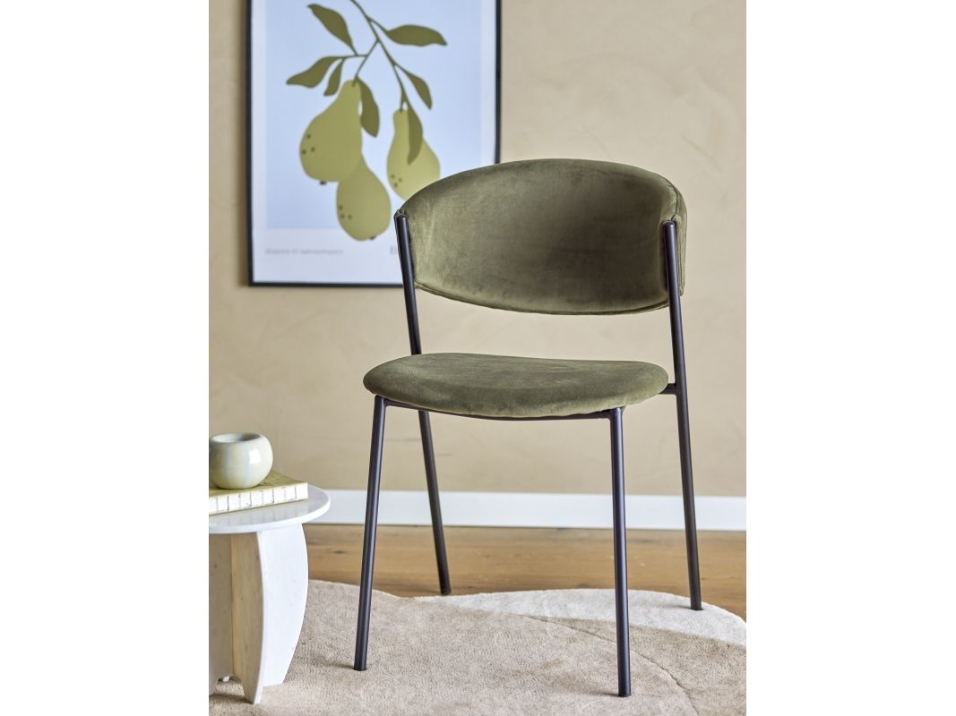 The Marlo Dining Chair by Bloomingville features a simple, Nordic design and is upholstered with recycled polyester. The chair's clean lines and dark green color create a sleek look that fits into any home. The padded backrest and seat ensure comfortable seating, and the chairs can easily be stacked when guests have left.