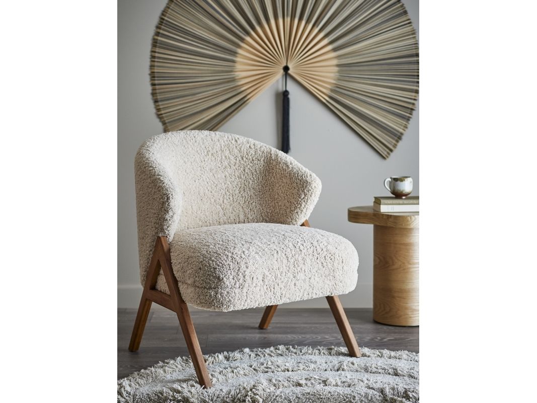 The Camino Lounge Chair by Bloomingville combines sleek design with comfort. Its soft fabric in a neutral tone accentuates the chair’s clean lines and minimalist form, while the dark wooden legs provide a bold contrast to the light upholstery. The refined balance of materials and colors gives the chair a timeless character that integrates effortlessly into any interior, making it a versatile and elegant statement piece.