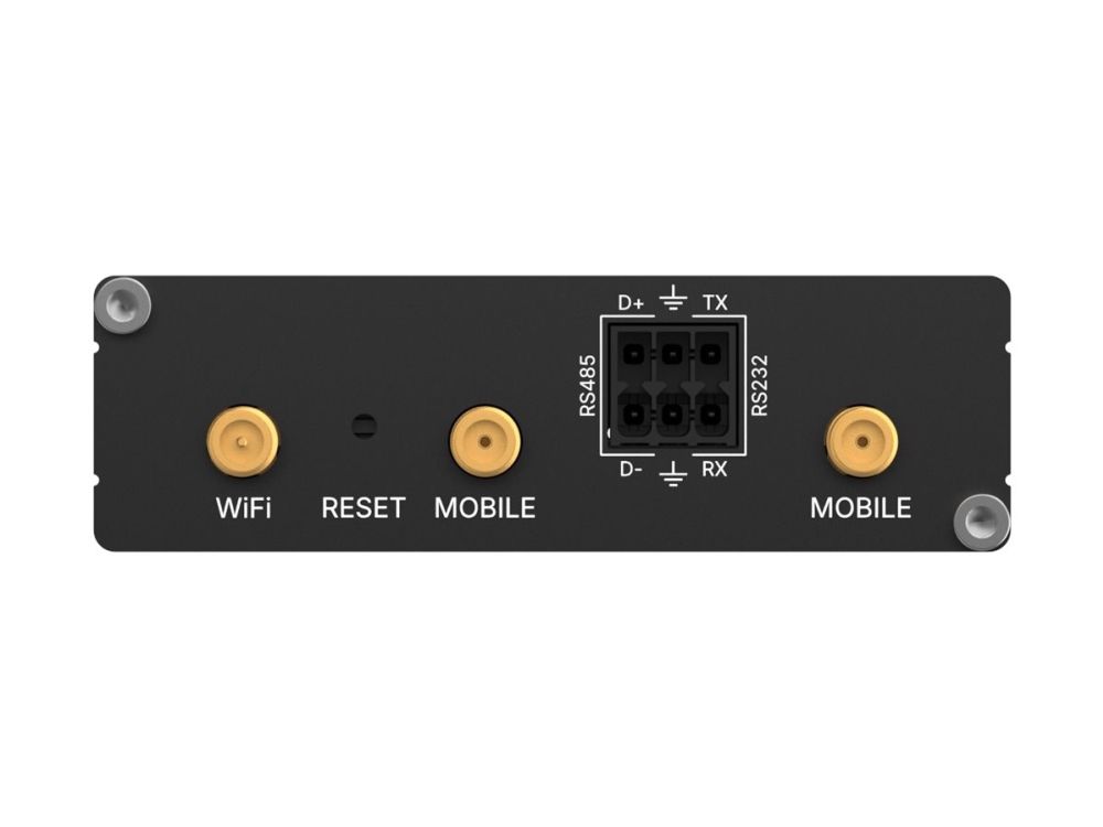 WAN: 1 x 10Base-T/100Base-TX - RJ-45 LAN: 3 x 10Base-T/100Base-TX (PoE) - RJ-45 Seriel: 1 x RS-232/485 - 6-pins terminalblok Antenne: 2 x SMA - mobil Antenne: 1 x RP-SMA - Wi-Fi