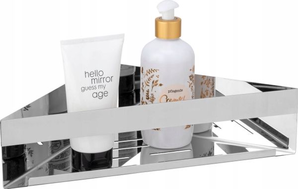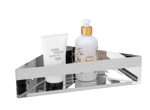 Stainless steel corner shelf chrome plated 36 x 17 x 8 cm - easy install without drilling with Turbo-Loc®