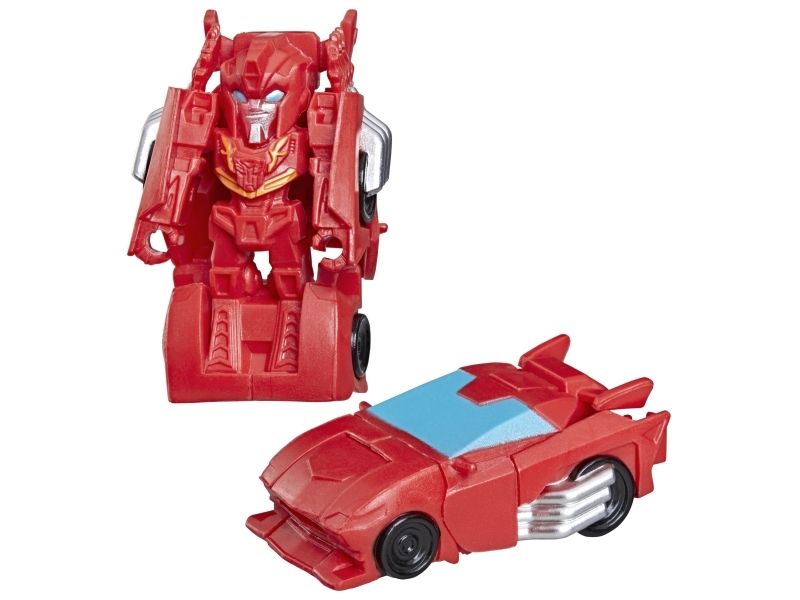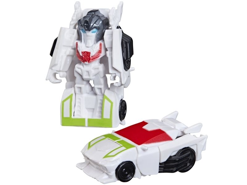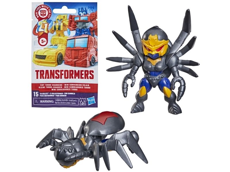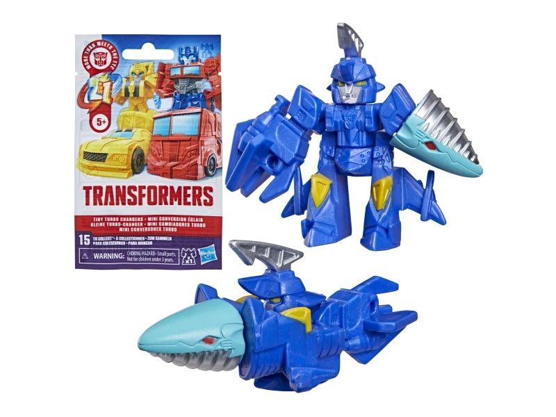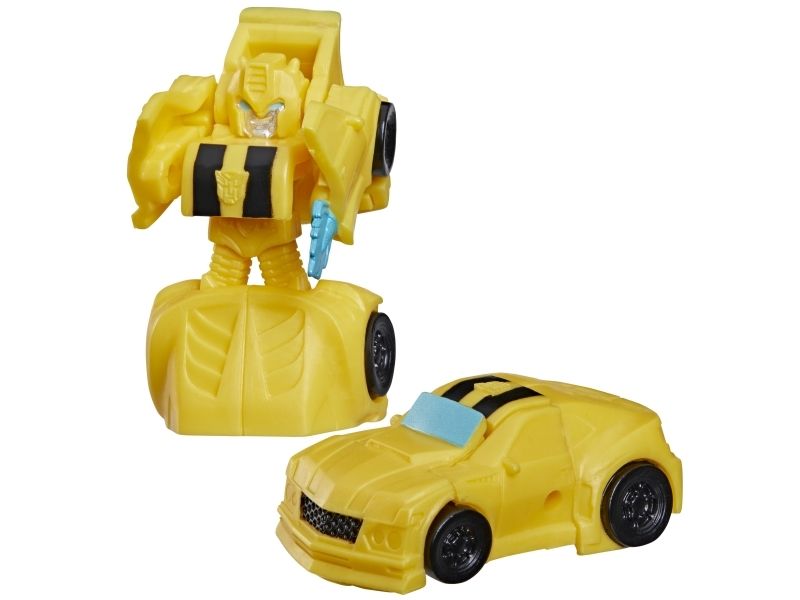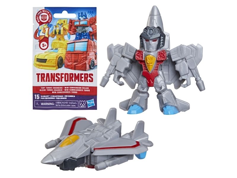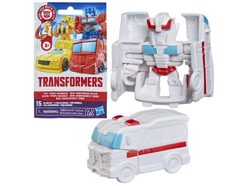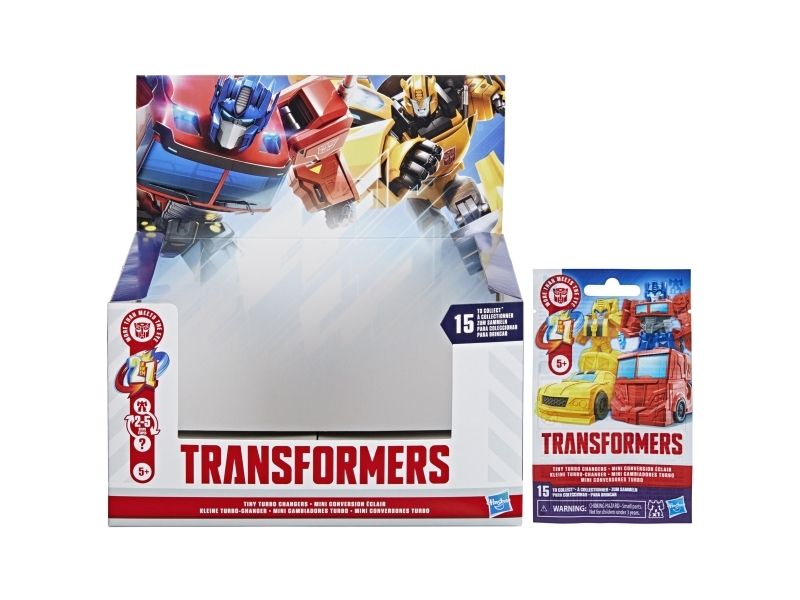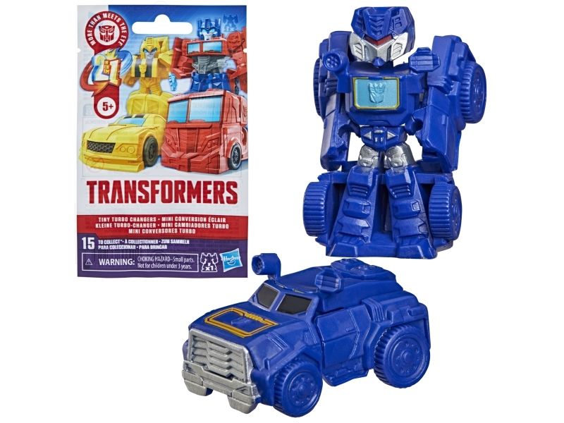 Discover 1 of 15 surprise mini action figures with Transformers Tiny Turbo Changers toys! Each 3.5-cm (1.5 inch) figure changes from robot mode to alt mode in just 2 to 5 steps that are simple enough for children ages 5 and up. Possible characters are Optimus Prime, Bumblebee, Wheeljack, Autobot Whirl, Arcee, Autobot Hot Rod, Autobot Ratchet, Elita-1, Grimlock, Megatron, Shockwave, Soundwave, Starscream, Blackarachnia and Sky-Byte. These small Transformers toys make great stocking fillers, Easter basket stuffers or birthday party favour toys. TRANSFORMERS and HASBRO and all related trademarks and logos are trademarks of Hasbro, Inc.
