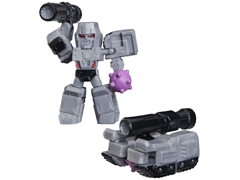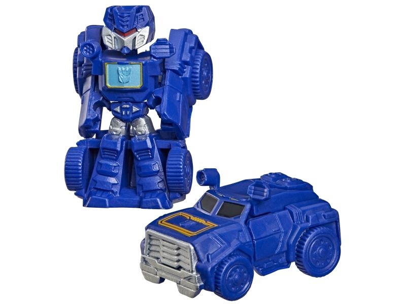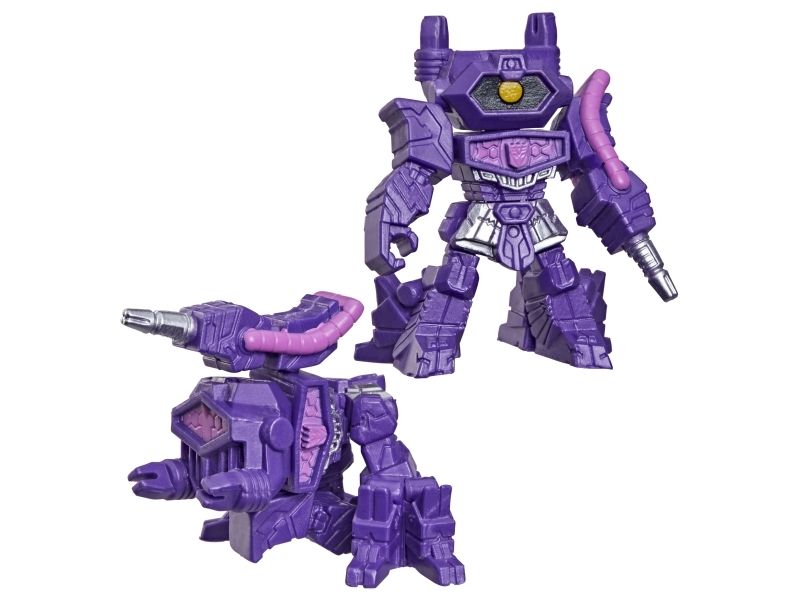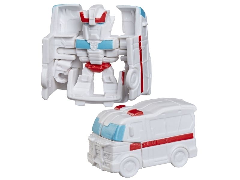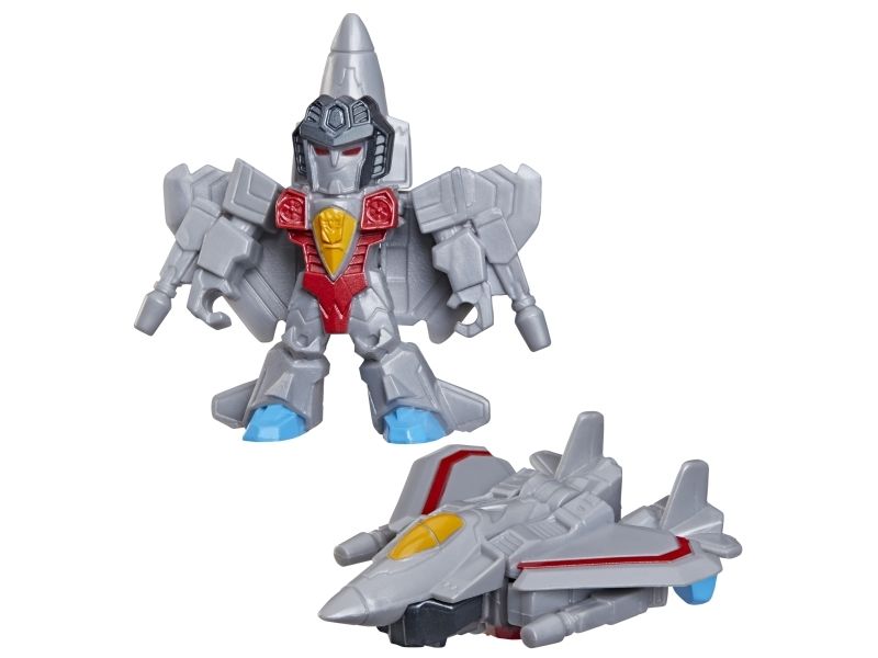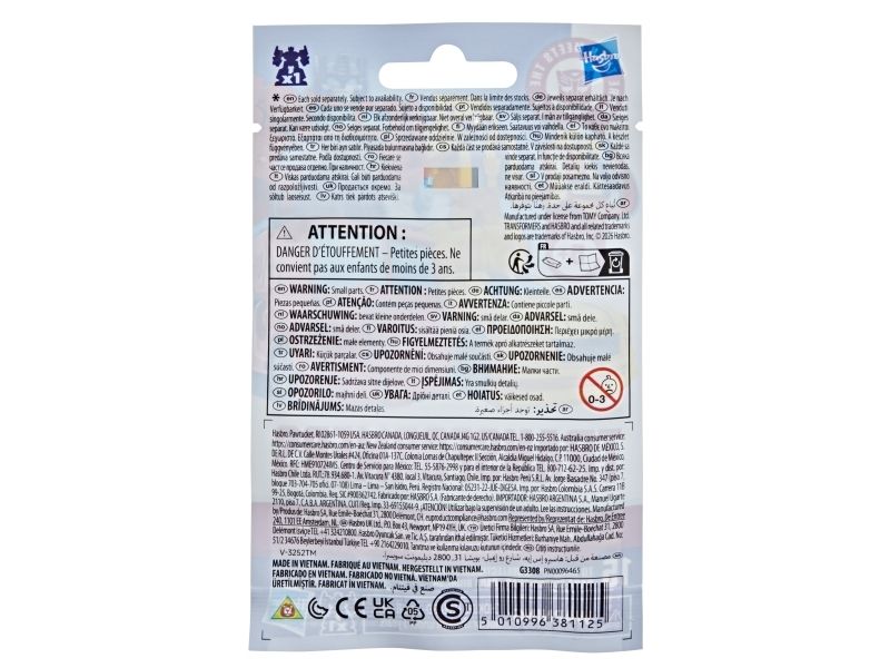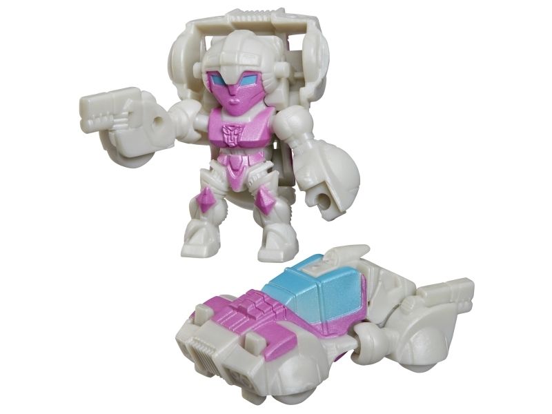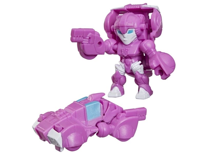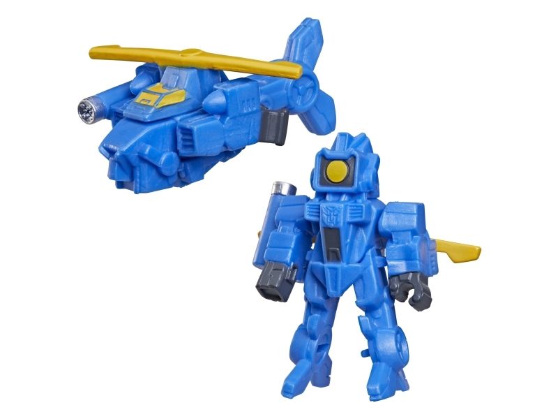 Discover 1 of 15 surprise mini action figures with Transformers Tiny Turbo Changers toys! Each 3.5-cm (1.5 inch) figure changes from robot mode to alt mode in just 2 to 5 steps that are simple enough for children ages 5 and up. Possible characters are Optimus Prime, Bumblebee, Wheeljack, Autobot Whirl, Arcee, Autobot Hot Rod, Autobot Ratchet, Elita-1, Grimlock, Megatron, Shockwave, Soundwave, Starscream, Blackarachnia and Sky-Byte. These small Transformers toys make great stocking fillers, Easter basket stuffers or birthday party favour toys. TRANSFORMERS and HASBRO and all related trademarks and logos are trademarks of Hasbro, Inc.