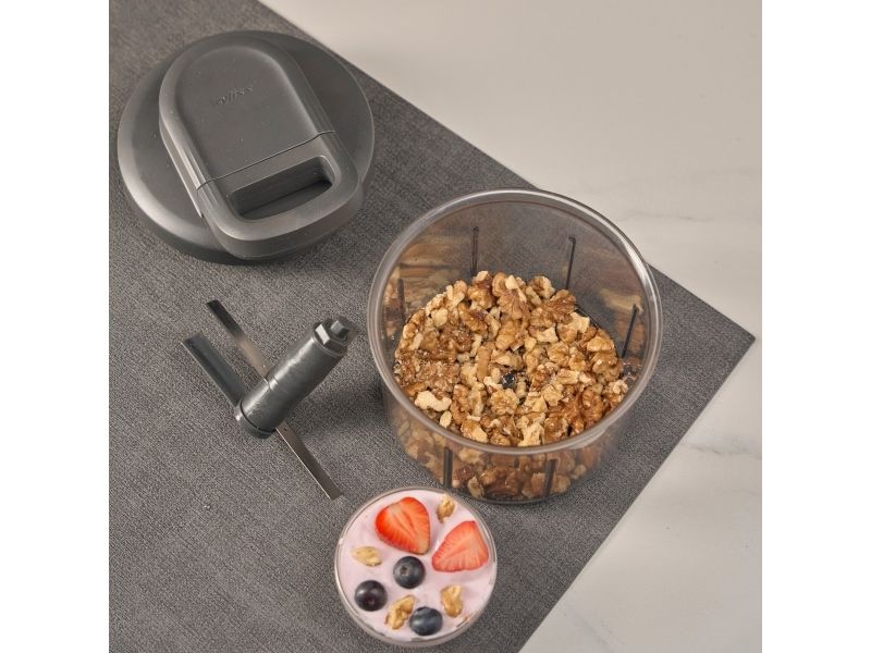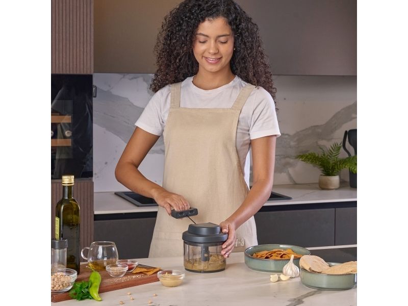 The Easy Pull Food Processor makes blending hard vegetables and creating smooth purées for dips effortless—all without the need for electricity. Its powerful, hand-operated design chops through tough ingredients with ease, giving you perfectly blended results in seconds. It's compact size means it fits neatly in any kitchen, making it a convenient addition to your cooking routine. With an 800ml bowl capacity, it’s perfect for preparing both small and larger quantities, giving you the flexibility to make just the right amount every time.