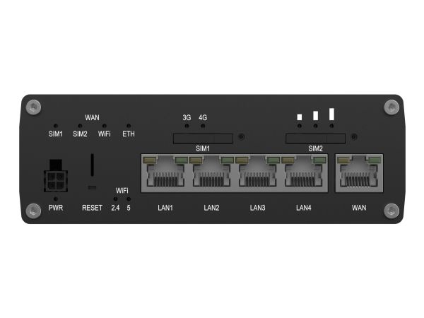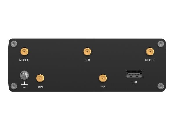 WAN: 1 x 10Base-T/100Base-TX/1000Base-T - RJ-45 LAN: 4 x 10Base-T/100Base-TX/1000Base-T - RJ-45 Antenne: 2 x SMA - mobil Antenne: 2 x RP-SMA - Wi-Fi Antenne: 1 x SMA - GNSS-antenne USB 2.0: 1 x Type A 1 x DO - 4 pin strøm 1 x DI - 4 pin strøm