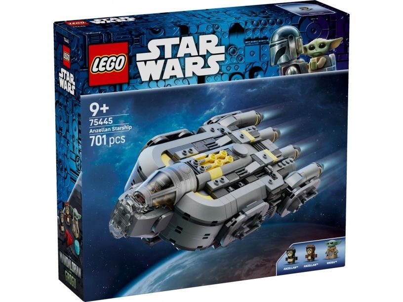 Build and repair droids aboard the Anzellan Starship (75445), as seen in Star Wars: The Mandalorian and Grogu™, with this LEGO® Star Wars™ toy building set for kids. Open the canopy of the cockpit and lift off the roof of the main compartment to place the Grogu LEGO figure and 2 cute Anzellans inside this highly detailed starship. Use the droid parts and tools in the workshop area to build a Battle Droid (or remove the workbench from the starship to play with outside). Place LEGO figures at the table with blue cookies or in the seat by the console. Pull down the ramp when it’s time to disembark. A cool gift for boys, girls and any Star Wars: The Mandalorian and Grogu fans ages 9 years old and up, this brick-built starship model is a great way to spark kids’ creativity. Kids can enjoy intuitive building with the LEGO Builder app, zooming and rotating with 3D instructions, while saving and tracking progress – all from the app. Set contains 701 pieces.